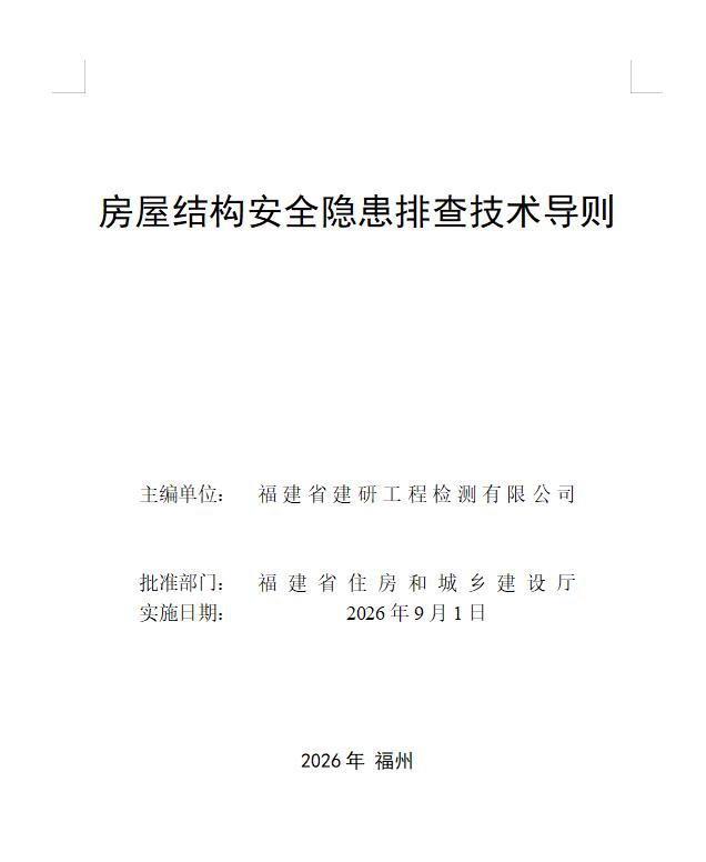 《房屋结构安全隐患排查技术导则》自2026年9月1日实施,《房屋结构安全隐患排查手册(2020年3月版)》同时废止。