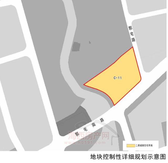 仓山区350104-LX-C管理单元C-11地块用途为二类城镇住宅用地,用地面积1.86公顷(27.9亩),容积率1.5,建筑限高36米。