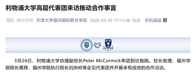2026年1月24日,天津大学利物浦福州联合学院对外发布“硕士项目招生简章”。