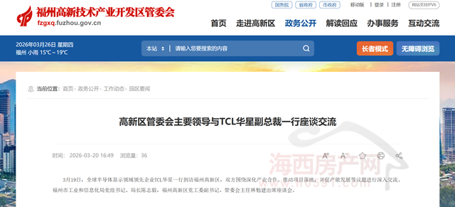 海西房产网(微信公众号:fjhxfcw)消息:福州高新区官网刊发消息透露,3月19日,全球半导体显示领域领先企业TCL华星一行到访福州高新区,双方围绕深化产业合作、推动项目落地、共促产能发展等议题进行深入交流。