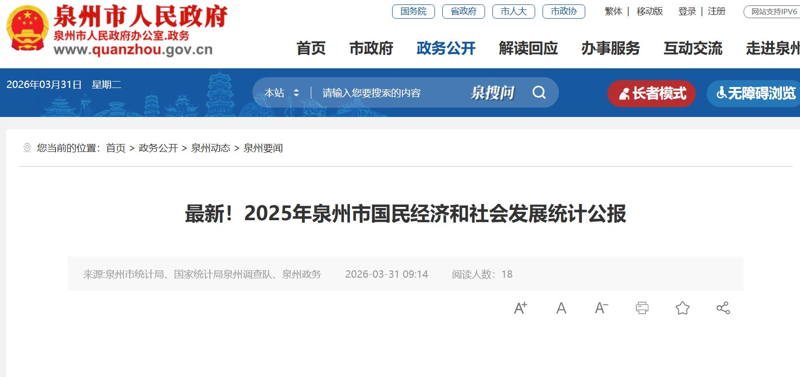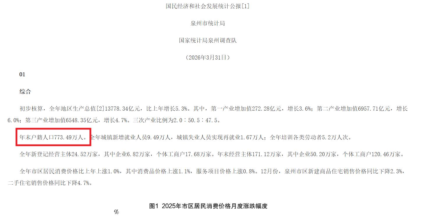 海西房产网(微信公众号:fjhxfcw)消息:2026年3月31日,泉州市统计局、国家统计局泉州调查队、泉州政务发布“2025年泉州市国民经济和社会发展统计公报”。
