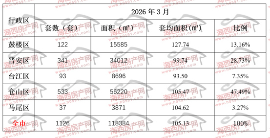 2026年3月福州五行政区住宅签约明细表
