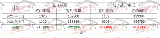 整体上看,今年前3月楼市出现分化,七县(市)区网签量是五行政区三倍以上。