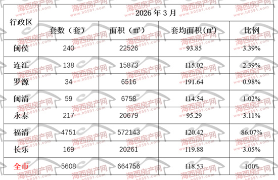 七(县)市区在福清带动之下,3月签约5608套、664756㎡,与2025年3月相比,分别增加383.86%和413.74%。