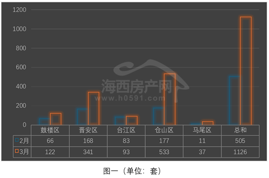 “台江区”和“马尾区”位列四、五两位,3月分别签约93套和37套,环比2月分别增加10套和26套。