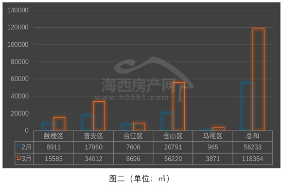 “仓山区”位列榜首,3月签约56220㎡,环比2月增加170.4%。