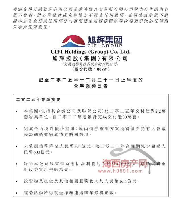 3月31日,港股上市房企旭辉控股(集团)有限公司发布截至2025年12月31日止年度全年业绩公告。