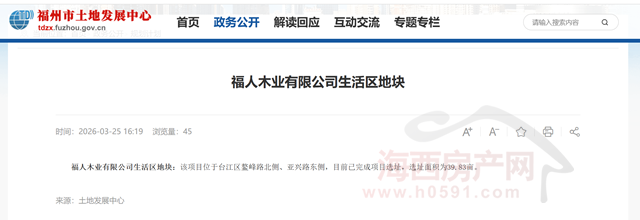 海西房产网(微信公众号:fjhxfcw)消息:近日,福州市土地发展中心对外透露,福人木业有限公司生活区地块目前已完成项目选址。