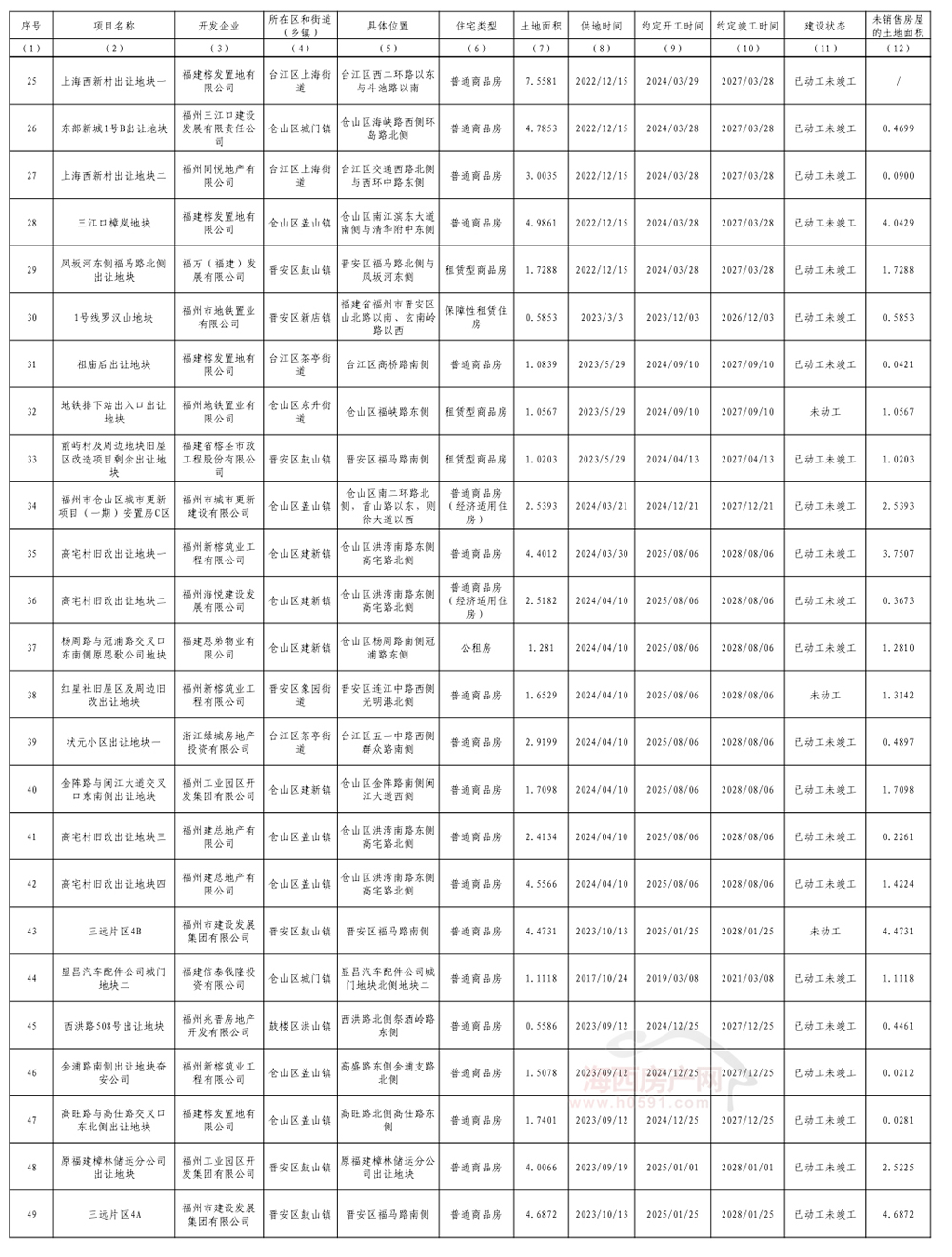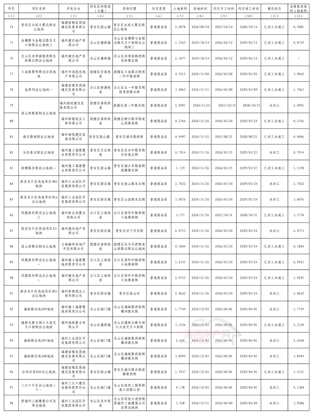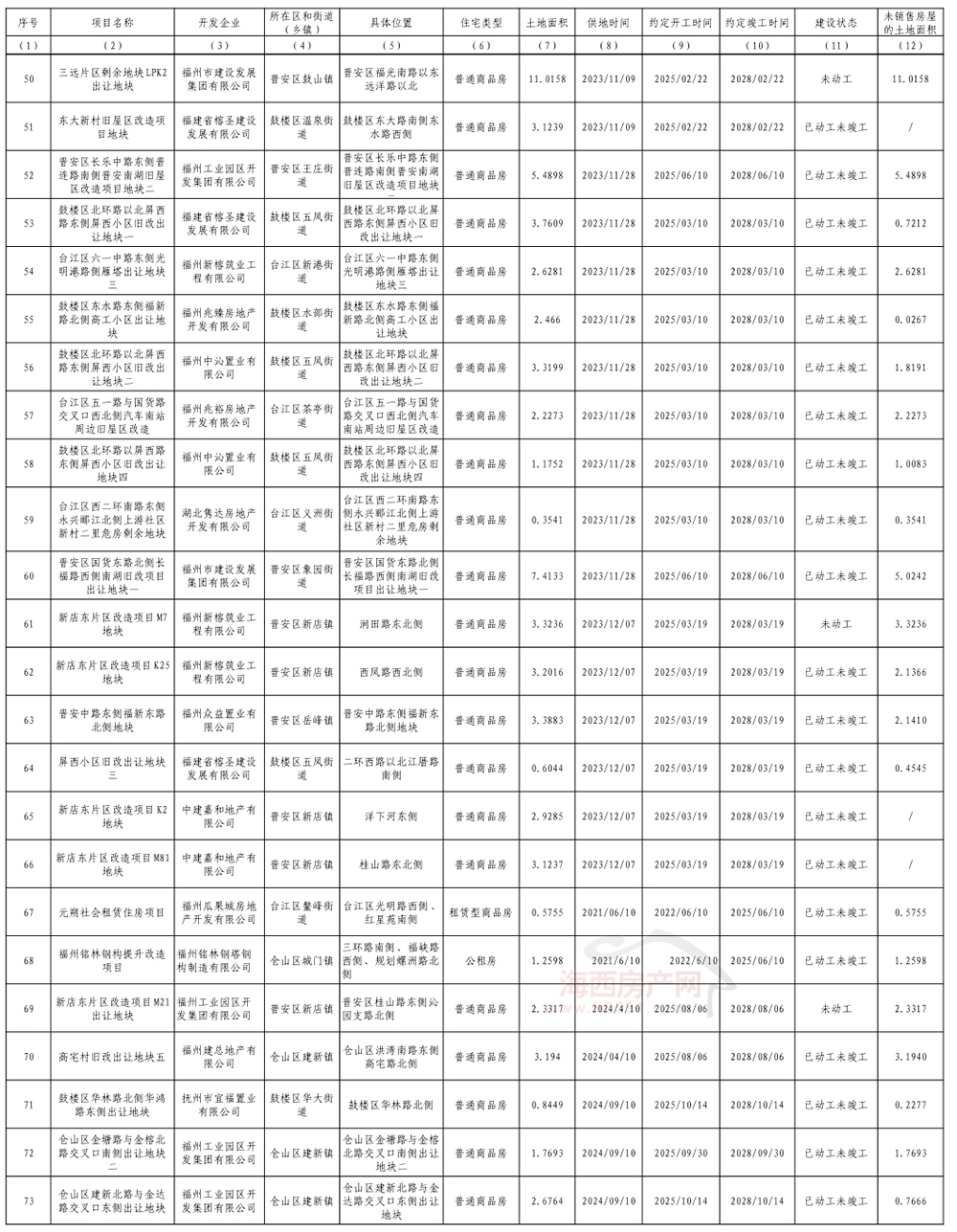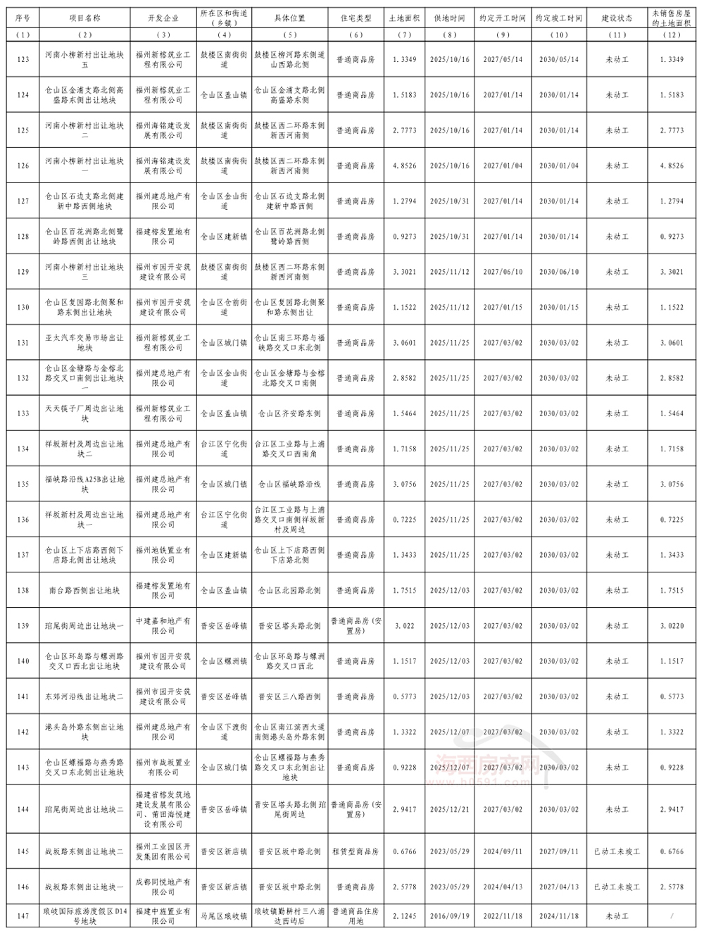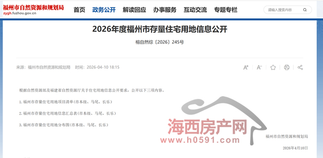 海西房产网(微信公众号:fjhxfcw)消息:4月10日,福州市自然资源和规划局公开2026年度福州市存量住宅用地信息。
