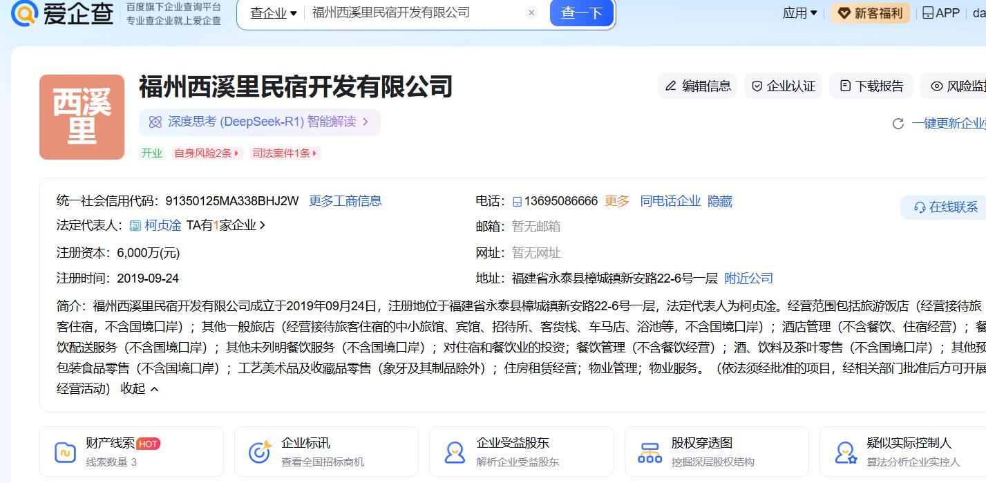 根据公开资料显示,福州西溪里民宿开发有限公司是专注于民宿开发与运营的企业,其项目布局主要围绕福建本土,尤其是福州及其周边区域展开。其中包括闽清雄江镇「西溪里」民宿集群、永泰嵩口古镇「西溪里·嵩口」民宿、闽侯白沙镇「西溪里·白沙」田园民宿。