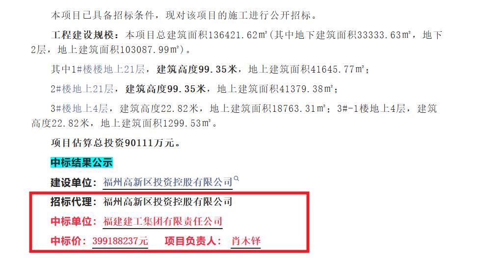 根据此前公开的信息显示,由福建建工集团有限责任公司成功中标福州高新区海西高新技术产业园创新园四期A区(施工),中标价39918823.00元,标志着高新区海西园CBD建设迈出关键一步,一座集产业集聚、智能高效于一体的现代化产业载体即将落地!
