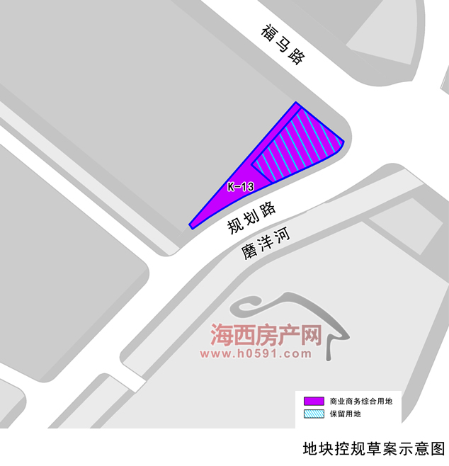 公示内容显示,晋安区350111-LP-K管理单元K-13地块位于磨洋河西侧、福马路南侧。