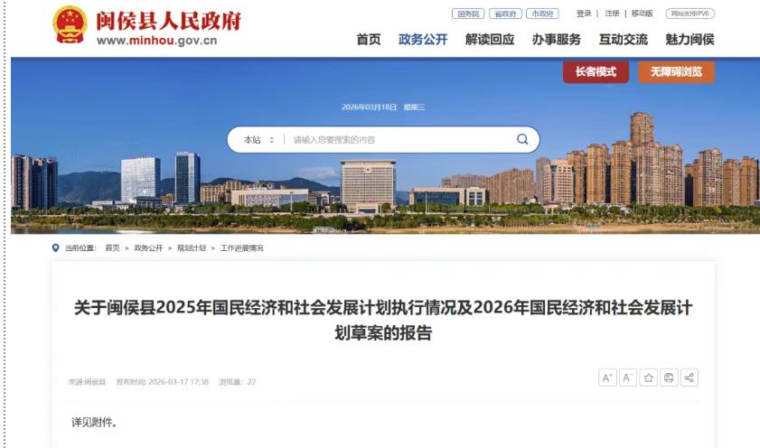 3月17日,闽侯县政府官网发布《关于闽侯县2025年国民经济和社会发展计划执行情况及2026年国民经济和社会发展计划草案的报告》。明确提到推动雪峰山城、东南大道周边、南通廷宅等13个片区土地征收成片开发。