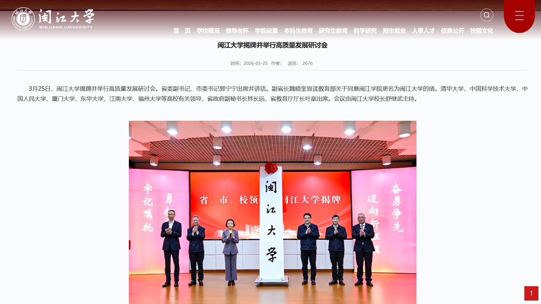 3月25日闽江大学揭牌(官网截图)