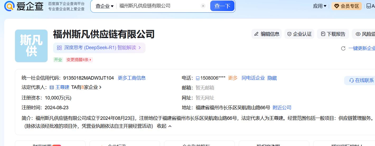 该开发企业福州斯凡供应链有限公司,成立于2024年08月23日,注册地位于福建省福州市长乐区吴航南山路66号。经营范围包括一般项目:供应链管理服务。(除依法须经批准的项目外,凭营业执照依法自主开展经营活动)