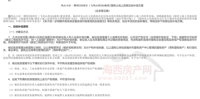 2026年4月8日,福州市仓山区发布“凤山小区一期项目B项目(飞凤山周边A地块)国有土地上房屋征收补偿方案 (征求意见稿)”。
