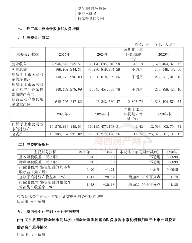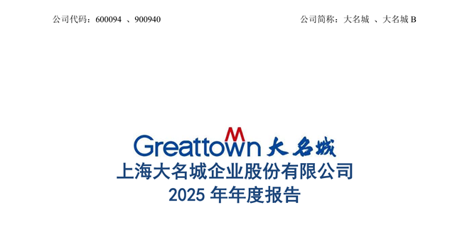 海西房产网(微信公众号:fjhxfcw)消息:4月22日晚间,上海大名城企业股份有限公司(以下简称“大名城”)同步发布2025年年度报告及2026年第一季度报告。