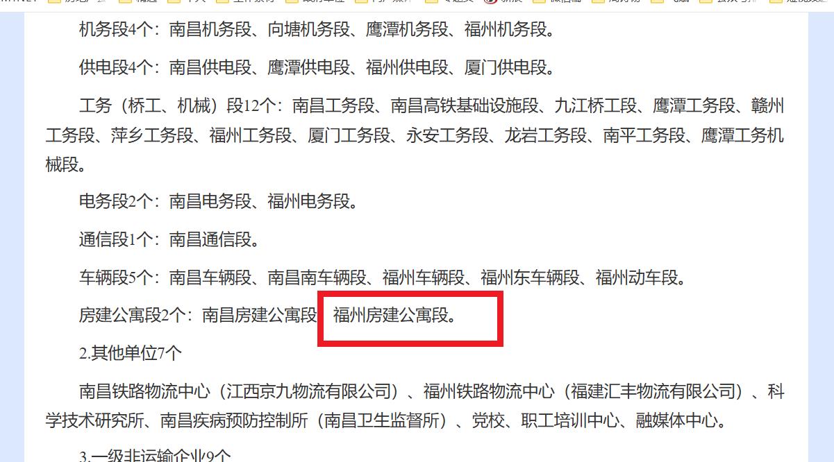 其中,房建公寓段2个:南昌房建公寓段、福州房建公寓段。