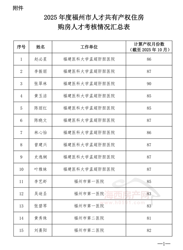 经材料报送、各县(市)区人社局或市属事业单位主管部门审核、实地走访、市人才住房保障工作领导小组办公室例会研究、社会公示等程序,现将福州市71名人才共有产权住房购房人才的2025年度考核情况附后。