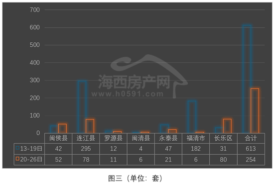 “长乐”、“连江”和“闽侯”位列前三,上周分别签约80套、78套和52套,环比前一周两升一降。