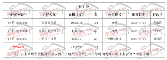 二、上周新增预售楼盘(住宅类)
