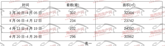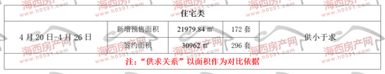 ——4月20日-26日五区住宅签约296套,面积30962㎡