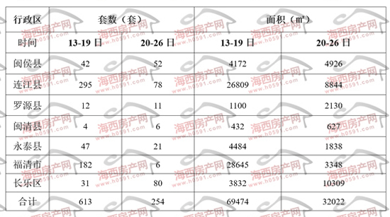 上周福州下限七县(市)区住宅签约明细表