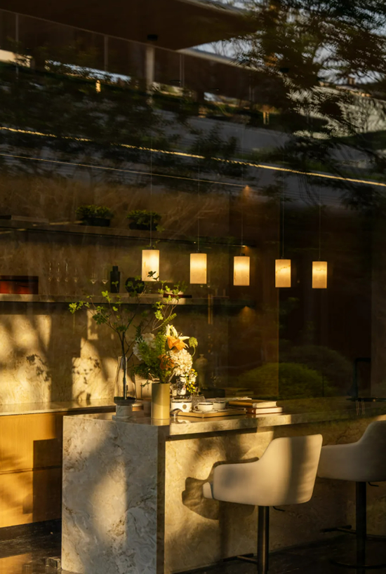 步入庭园深处,心境豁然开朗,沉浸于咫尺山林的宁静。精选中国黑景石层峦叠瀑,一株红花继木寓意鸿运当头;天然片岩为骨,再现“一池三山”的古典园林格局;特选乌桕朴树,立体森居意境,景石嶙峋错落,自然而然复刻一座山林溪谷;造价超100万的“浮屿客厅”,1502片定制琉璃瓦如水晶宫阙点亮东方意境,内构古法榫卯,铸就福州园林独一无二的精神地标。