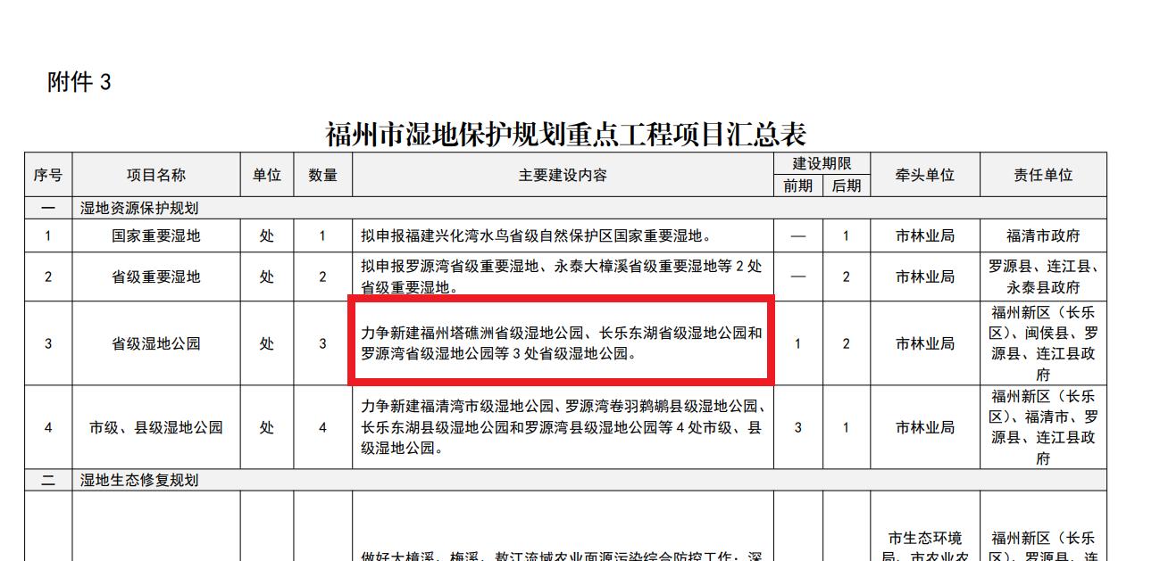 同时也公布了.福州市湿地保护规划(2025-2030年)、福州市湿地保护规划重点工程项目汇总表。
