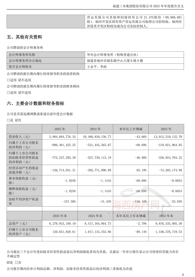 根据4月29日三木集团发布2025年年报显示,公司营业总收入为59.05亿元,在已披露的同业公司中排名第5,较去年同报告期营业总收入减少45.76亿元,同比较去年同期下降43.66%。归母净利润为-8.96亿元,在已披露的同业公司中排名第12,较去年同报告期归母净利润减少3.65亿元。